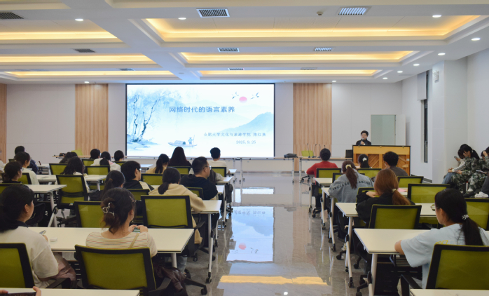 9月25日,党委宣传部和团委联合举办“网络时代的语言素养”专题讲座,邀请语言文化与旅游学院国际中文教育专业硕士点负责人,安徽省语言学会和演讲学会理事陈红燕主讲,100余名学生到场聆听。